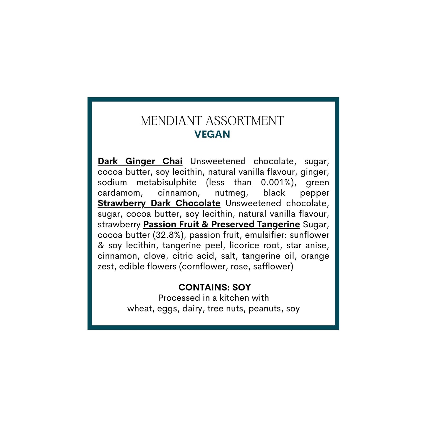 Vegan: dark ginger chai - strawberry dark chocolate - passion fruit & preserved tangerine